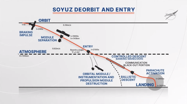 到了下下末端的时候,也就是出现了黑障的时候,在10千米高度的区域里,降落伞就可以发挥出它本来的作用了,在飞船上面一共有两个伞包区域,分别是主伞以及备用伞,不过在一般情况之下,备用伞都不怎么会用得到,只会运用到主伞。它的打开是有固定顺序的,第1步要引导伞打开,第2步是拉出减速伞,第3步打开主伞,开伞也有一个恒定的标准,大概是10千米的高度左右。