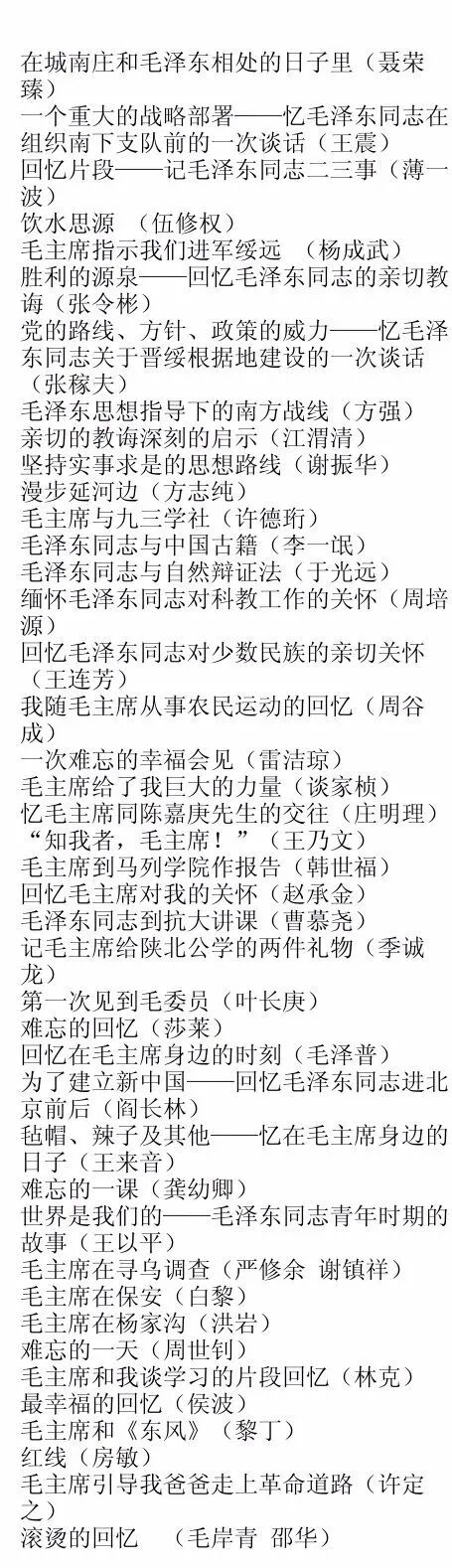 近日得来一本曾经和毛主席一起共过事的老同志集体写的回忆录——《难忘的回忆——怀念毛泽东同志》,本书的作者是44位毛主席曾经的战友、同志、亲人,如聂荣臻、王震、薄一波、毛泽普、林克、侯波、毛岸青、邵华等等。