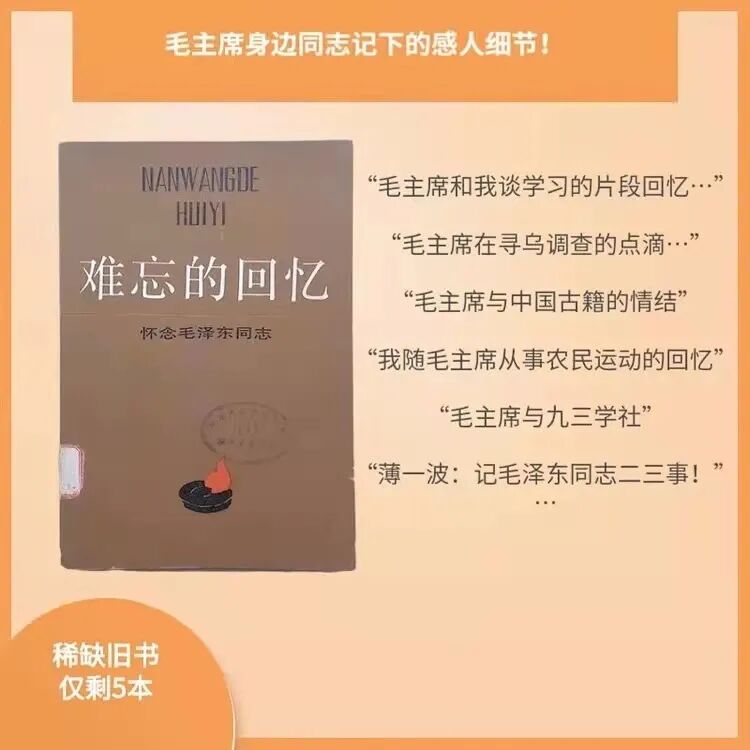 这本书,希望您不要错过,尚且健在的、在毛主席身边工作过的老同志已经非常非常少了,他们出版的类似的有关毛主席的回忆录这样的书也是极少的,我们现在看到的很多 写毛主席相关事情的书都是后来的作者们抄来抄去,难有这样的老同志的一手回忆材料,真实、不夸大、细节丰富,这样的书错过了以后真的很难再遇到了!