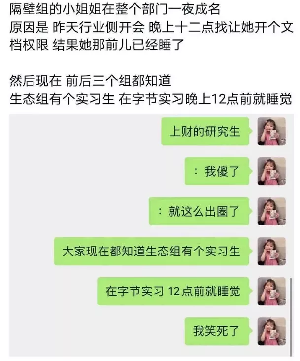 本来五天八小时是正常的工作制度,结果却在这些互联网大厂的压榨下变成了996,甚至是拼多多每月工作380小时的本分。这样公开违反《劳动法》的行径长期存在,即便成为人人喊打的过街老鼠仍然十分高调。比如最近一位字节跳动的实习生小姐姐火了,因为她在12点以前就睡觉了。