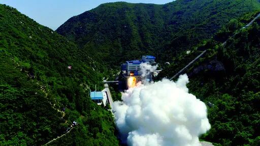 (大山深处的火箭发动机试车,看这架势,应该挺烧钱的)