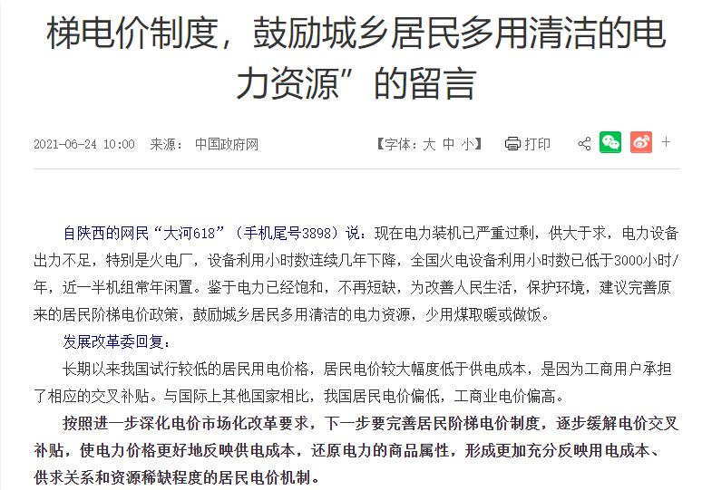 该回复又称,工商业电价偏高,居民电价偏低,这样不公平。看来是要对居民和工商业主也就是资本家一视同仁。