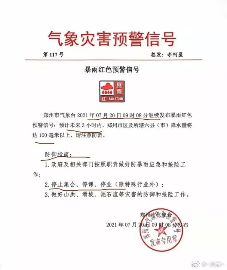 暴雨固然是千年一遇,但当地在连发数道红色预警之后,上班依旧,地铁照开,不知道是不是没把这千年一遇的暴雨放在眼里。