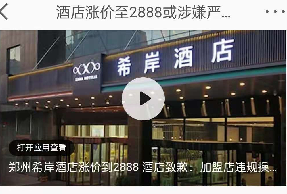 大雨袭来,无数人有家难回,郑州东站附近的希岸酒店趁机涨价,而且涨的离谱,原来两三百的客房,价格瞬间飙升十倍,涨到了2888元。