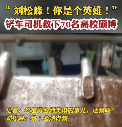 20日中午,郑州航空工业管理学院一行近70名新进硕士博士在巩义时被山洪所困,附近一位避险青年冒险用铲车将这些硕士博士全部救出。如果没有这位小伙子挺身而出,后果不堪设想。这位青年是一位铲车维修工人。