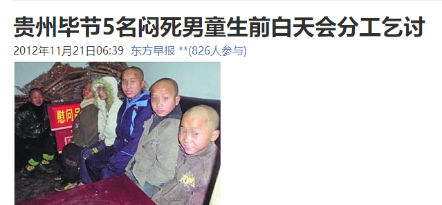 而贵州山区经济落后,留守儿童众多,前几年还有毕节拾荒儿童中毒死在垃圾桶,以及留守儿童兄妹四人服毒自杀的新闻。