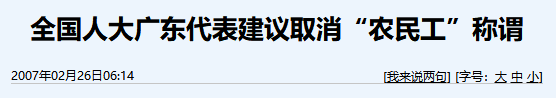 给农民工正名的消息不是什么新闻,在2007年和2012年都有人大代表提出过相关建议,并引起了媒体关注,其中最积极的正是吸纳农民工最多的广东省。