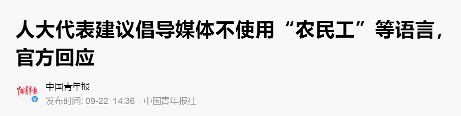 于是有些代表就对农民工的现实遭遇视而不见,脑回路一转打起了“农民工”这个词的主意,似乎把它改成什么“城市建设者”、“新产业工人”、“城市新公民”就可以使他们摆脱被歧视、被“恶意讨薪”、被……