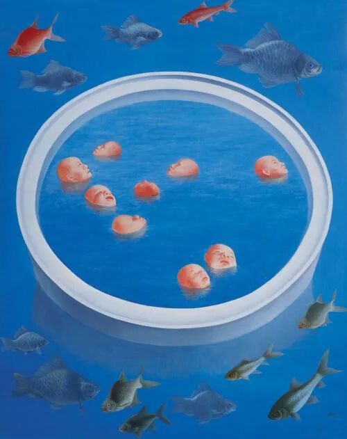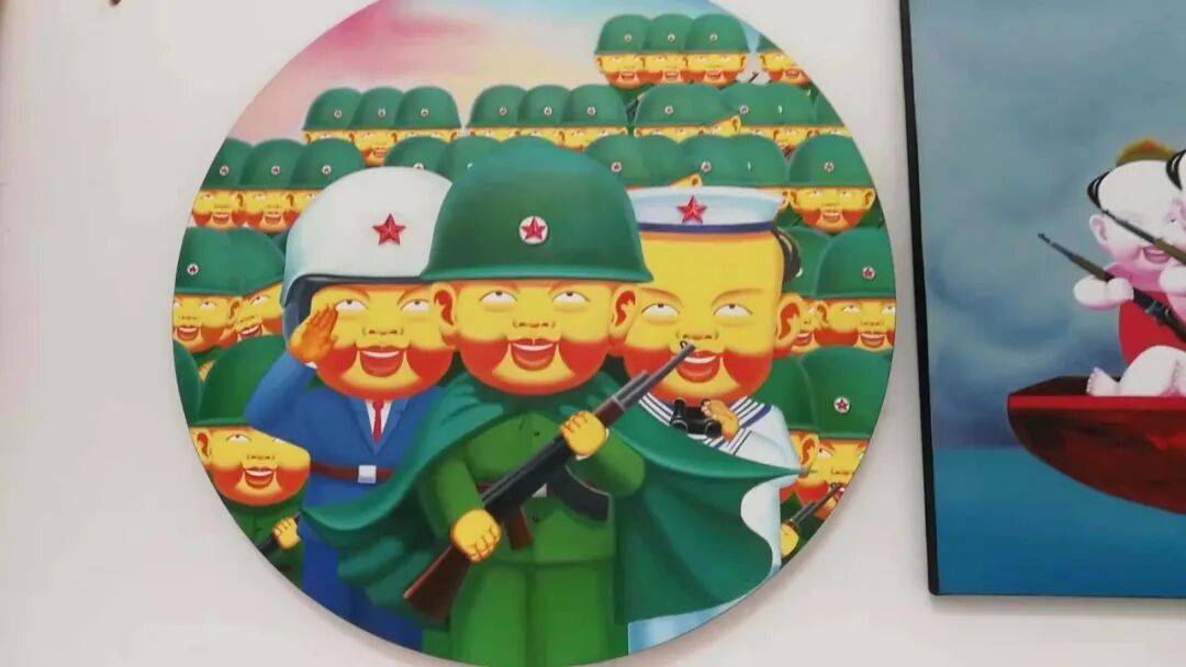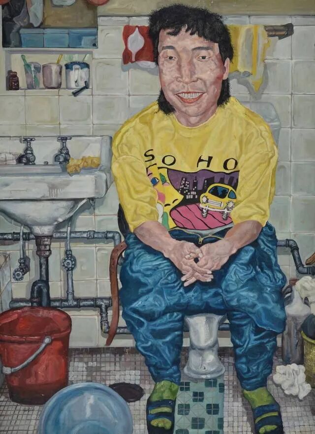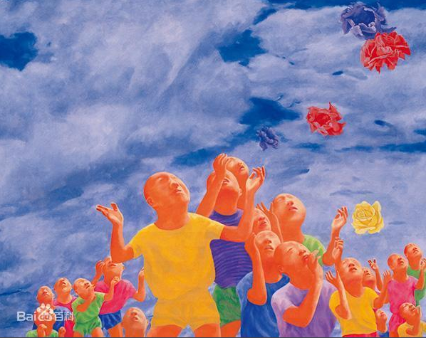 他和岳敏君都属于所谓的玩世写实主义,他系列作品所创造的是“光头泼皮”的形象,而岳敏君的是大笑脸人作品,都是一个套路。