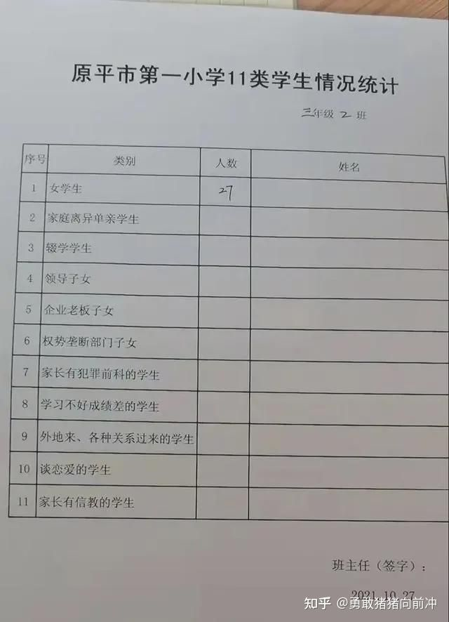 山西原平第一小学一张学生情况调查表受到人们的关注,该表将学生分成11类,“企业老板子女”、“权势垄断部门子女”和“领导子女”赫然在列。虽说划分标准有些混乱,但重点绝不模糊。
