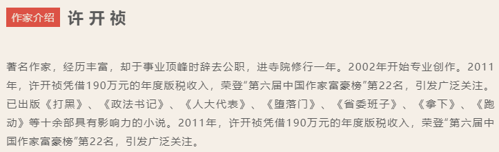 我看过一些官场小说,有一位作家叫许开祯,他在接受采访时是这么说的:“其他小说是源于现实而高于现实,但官场小说有时候是低于现实的,相比丰富多彩的官场现实,任何一个作家都会感叹笔力不足。”