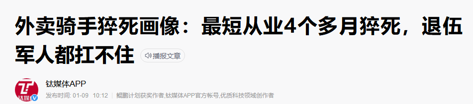 “美团制”下的骑手,除了靠超长的工作时间和高风险获得一点相对较高的工资以外,并无任何保障。到现在骑手的社保问题都没有解决,反而是有上百万的骑手被强制注册个体户。