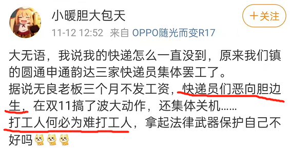 支持快递小哥们正义的维权行动,就是支持我们自己。