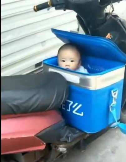 无独有偶,前几天有新闻报道江苏常州另一位带娃送外卖的小哥,他的女儿已经在外卖箱里长大了。
