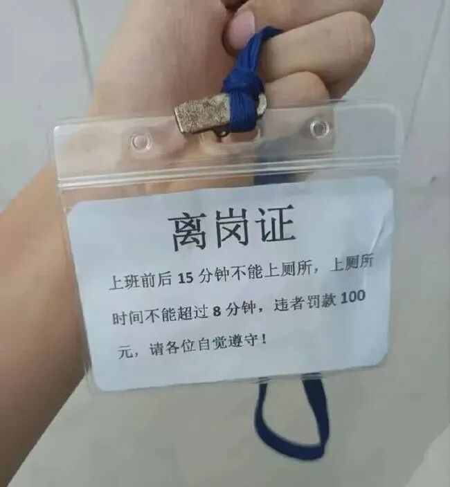 当你在流水线上累死累活,突然想上厕所,却发现唯一的离岗证被别人拿走时;