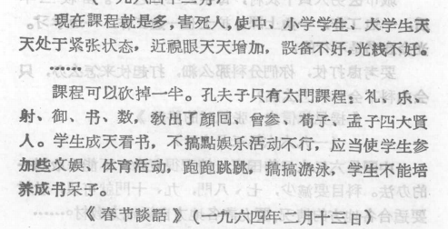这和毛主席说的“现在课程多,害死人,使中小学生、大学生天天处于紧张状态”、“旧教学制度摧残人材,摧残青年,我很不赞成”相比,有过之而无不及。