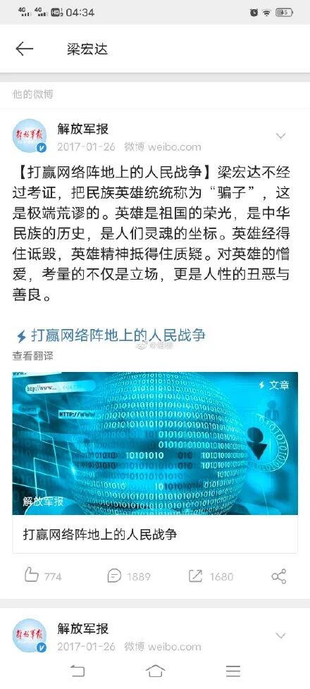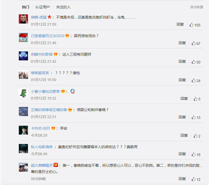 而更令人大吃一惊的是,网友@地瓜熊老六 因为质疑央视邀请曾经大肆抹黑雷锋、侮辱英烈的梁宏达上春晚,而被新浪微博以“引战”为名,封禁了15天。
