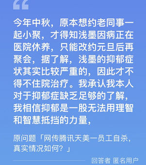 我们不好妄加猜测,但根据网络流传的消息,一说是他的小组年终考核未达预期要求,他与上层交涉未果,遂以死抗争。