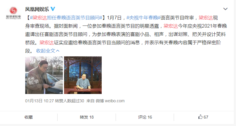 我们现在最想听到的是春晚官方的消息:梁宏达到底有没有参加春晚的相关工作?!