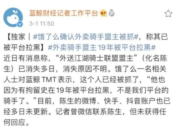 8日,本号发文批判“美团制”,后遭到美团两次投诉。相关消息还有北大博士陈龙跑外卖写论文,揭露“数字控制”下的劳动秩序;千万外卖员均为外包工,没有社保;美团被约谈、北京一处长跑外卖受关注。千万外卖员受到持续关注。