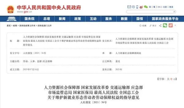 月底,多部门联合出台《关于落实网络餐饮平台责任 切实维护外卖送餐员权益的指导意见》和《关于维护新就业形态劳动者劳动保障权益的指导意见》。意见要求企业保障劳动者待遇、规范灵活用工等等。