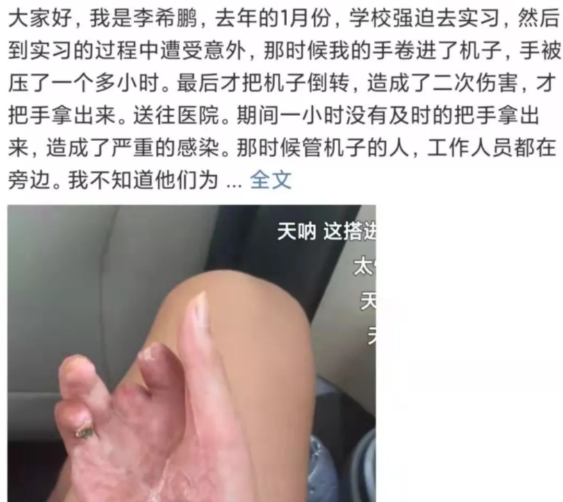月初,湖北十堰17岁中专生遭学校强制实习,在深圳工厂跳楼自杀身亡的消息被曝光,后续处理结果并未见更多报道。