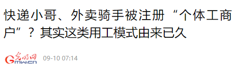 本月外卖公司采用将骑手注册为个体户的方式规避用工责任被曝光。