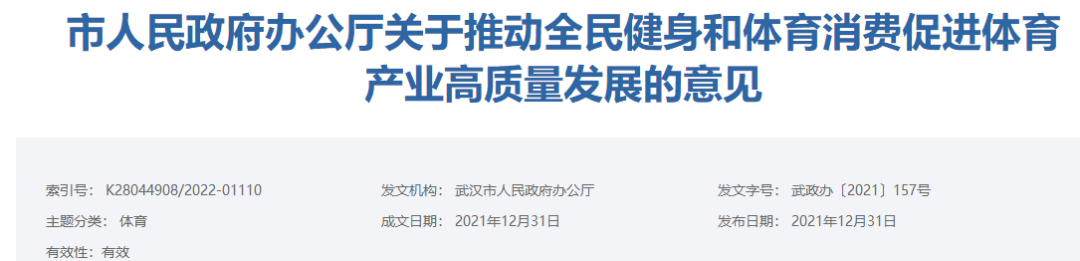 近日,武汉市“争取竞猜型赛马彩票试点落户”的消息受到媒体关注,该消息来自于武汉市2021年12月31日发布的《推动全民健身和体育消费促进体育产业高质量发展的意见》。
