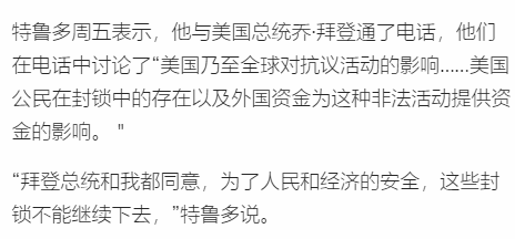某网的一篇文章则更加典型,直言不讳地指出卡车司机的抗议行动是受“美国极右翼无政府主义的影响,喜欢看到混乱和制造混乱,喜欢看到一个行政国家被破坏”。