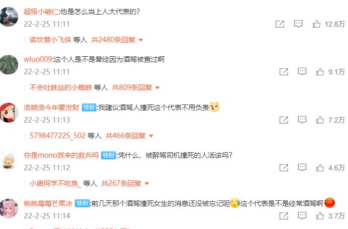 例如在2月25日,一位代表的奇葩提案就提前闪亮登场了。来自广东的代表朱列玉“建议取消醉驾型危险驾驶罪”,没有意外,评论区骂声一片。去年他就这么干过,今年是“再次呼吁”,不知道为何如此执着。