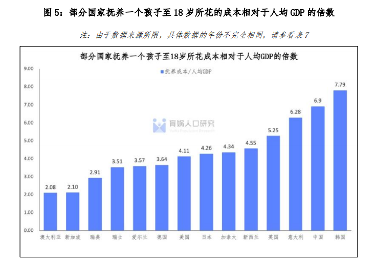 中国孩子(0-18岁)的养育成本是人均GDP 6.9倍,几乎是全球最高。