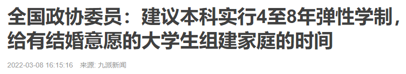 再如结不起婚和生不起娃的问题,不少提案可谓脑洞大开,鼓励本科生和研究生以及博士生边上学边生娃,又或者给一些杯水车薪的补贴来刺激生娃。
