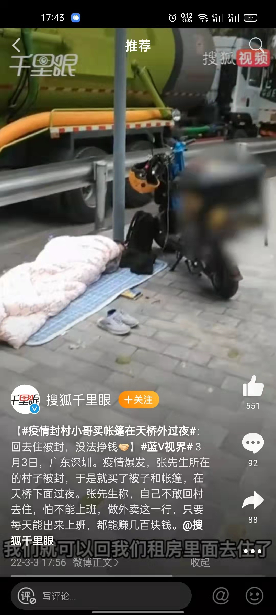 新冠流行,深圳的一位外卖小哥为了避免封控在村子里挣不到,就在外面睡起了大街。难道他真的愿意睡大街吗?这样的灵活,究竟是对资本家灵活,还是对打工人灵活呢?
