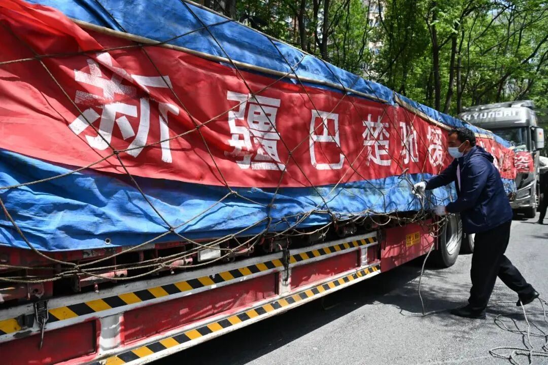 更令人感动的是,新疆喀什地区巴楚县人民驱车六天六夜,跨越万里驰援静安。运货的司机说:“这几天都在车上,不下高速地赶路,每天睡3个小时左右,饿了就吃馕,途中加了7次油。”