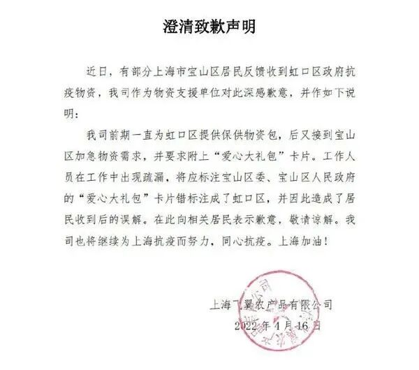 再如宝山月浦镇防疫物资被卖到松江,经调查发现是供货公司工作失误。而宝山居民也错误地收到了虹口的物资,同样是因为相关公司的失误所致。