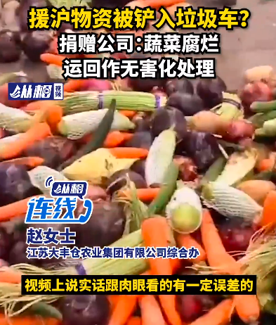 而江苏盐城捐赠的蔬菜甚至因为部分腐烂而被沪牌车从上海重新拉回盐城,铲到了垃圾车当中作“无害化处理”。