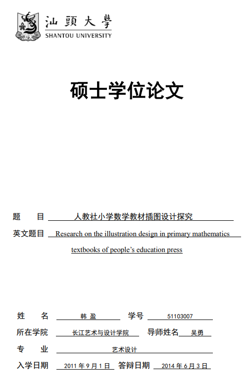 这篇吹嘘自己导师的论文名为《人教社小学数学插图设计研究》。