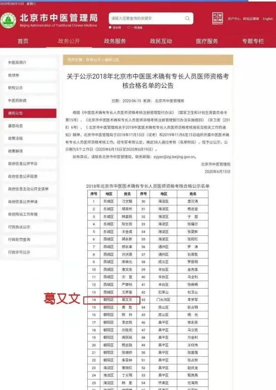 我们的大功臣葛又文,是在2019年11月通过了中医医术确有专长人员医师资格考核。