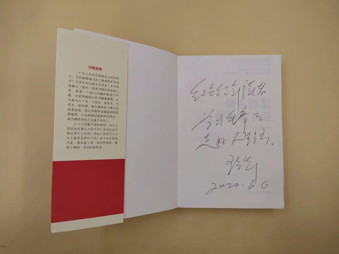 而更令小编激动的是,王大校还在两本书上特意寄语“红色纪年书店”读者:“学习毛爷爷,走好人生路!”