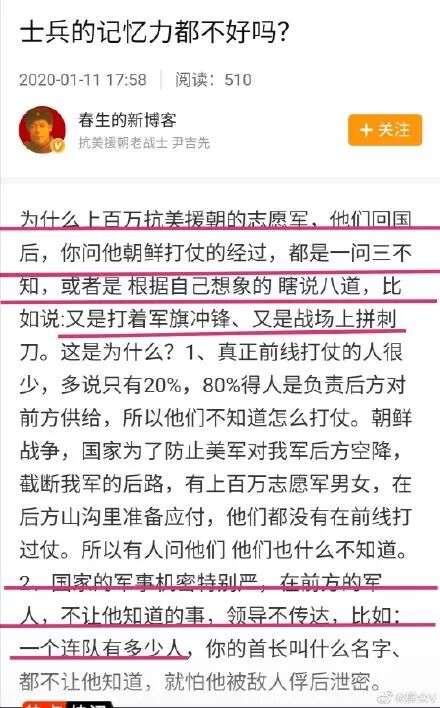 曾经感动无数人包括小编自己的 @老兵尹吉先,近期在微博上传播违背常识的历史知识和宣传错误思想的事情,引起舆论的高度关注。