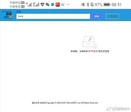 其次,我们也看到,在新华网搜索“尹吉先”,竟然是毫无内容: