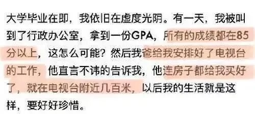 但是,前一段时间南京一位美女自曝父亲帮她修改成绩,并将她安排进电视台工作。工农子弟拼尽全力获得文凭才算有了一张正式的“卖身契”,而南京这位不知其父有什么背景的子弟只需要父亲几个电话便可以搞定。