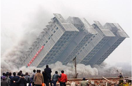 第二、炸楼,将一部分没有抛售出去,又起着决定性作用的一些楼盘给炸了,保证剩下的楼盘维持高价销售。这样做,不仅能维持楼盘高价销售不成问题,而且还能造成该片区楼盘一时紧张的局面,倒逼那些犹豫不决的人尽快买房。