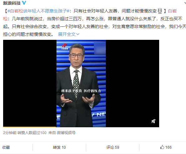 央视主持人白岩松说了句实话。他指出,现在年轻人不愿生孩子的主要原因是生活压力大,房价高得离谱,年轻人还有失业的风险,考虑到未来孩子的教育、医疗等压力,自然是想生也不敢生,因为生了也养不起。
