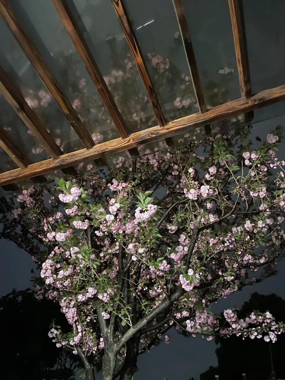 出去看看,万籁俱寂,院子里那株樱花树悄然开花了。