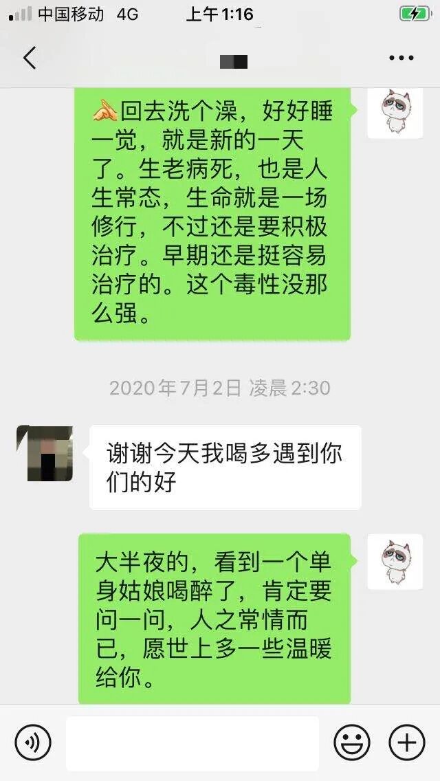 后来姑娘到家后,表达了感谢,说自己年纪轻轻患了重病,所以心情抑郁,晚上在酒吧喝多了,很感谢我们。