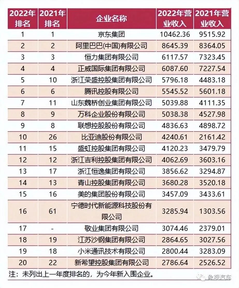 排在京东之后的分别为阿里、恒力、正威、荣盛、腾讯、魏桥、万科、联想、比亚迪。