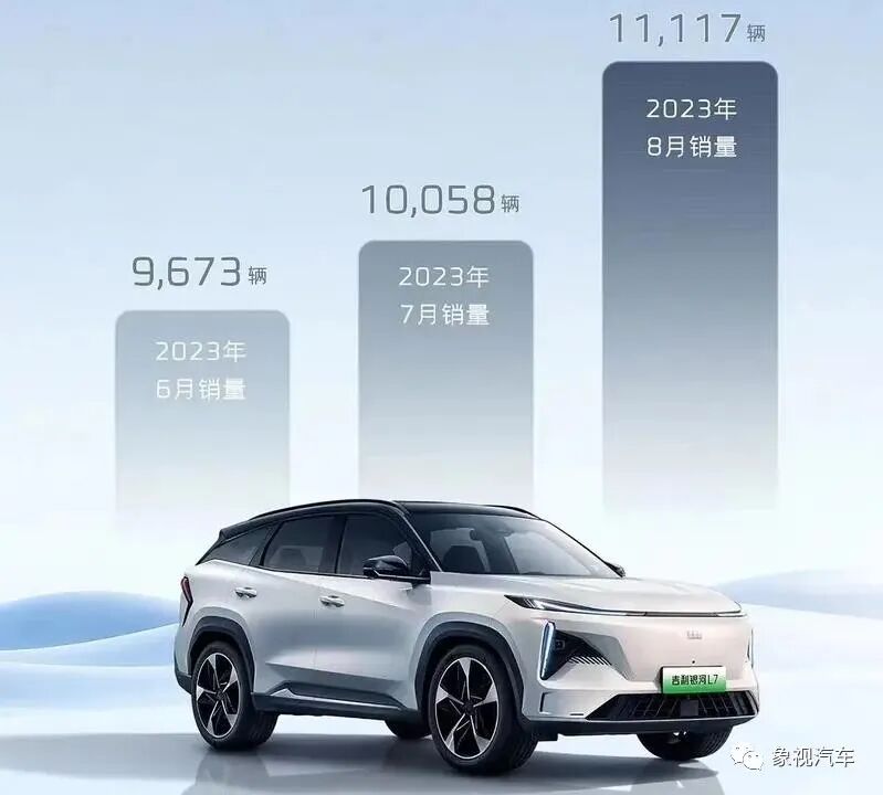 银河L7也够争气,上市首月的6月份,销量就达9673辆;7月份破万达到10058辆,8月份再破万增至11117辆。