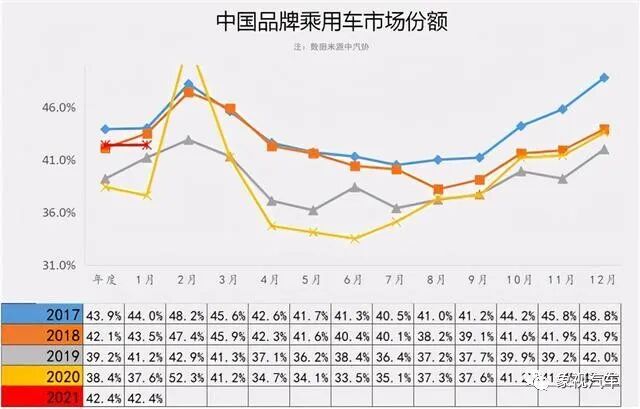 汽车行业存量竞争态势之下,尾部淘汰,头部集中,产业结构优化的同时,自主品牌整体市场份额也在提升。中汽协的数据显示,1月份我国自主品牌乘用车的市场份额达到42.4%,连续5个月保持在40%的红线之上,并且超过过去3年的年度水平。业内人士指出,随着更多“弱鸡”品牌退去,以及吉利、长城、长安、比亚迪、蔚来等头部车企实力递增,自主品牌份额反弹将成为必然现象,中期可以保持4成以上的水平,长期则可以达到甚至超越5成左右的份额。所以,我们乐见李书福预言成真。