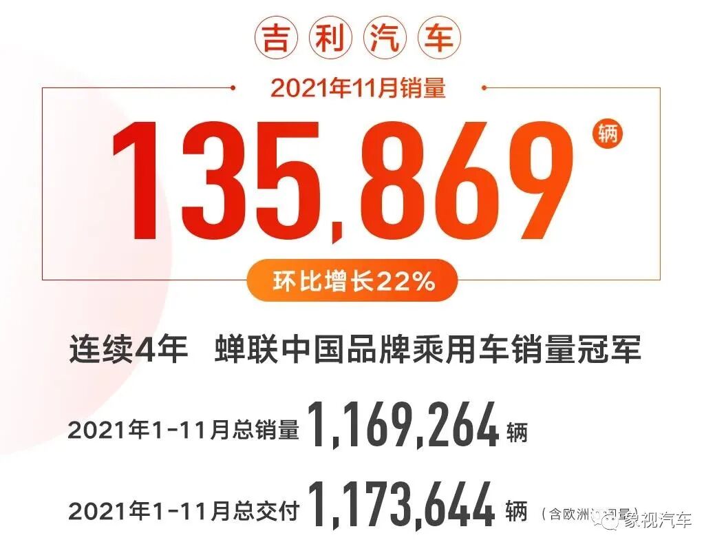 在新冠疫情和芯片紧缺的双重影响下,今年的汽车行业特别不容易。刚刚过去的11月份,吉利汽车展现出自主一哥的气势,取得亮眼的成绩。